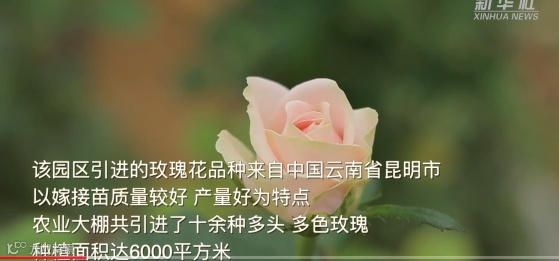 该园区引进的玫瑰花品种来自中国云南省昆明市,以嫁接苗质量较好、产量好为特点。农业大棚共引进了十余种多头、多色玫瑰,种植面积达6000平方米。
