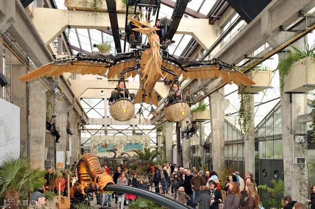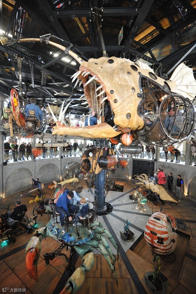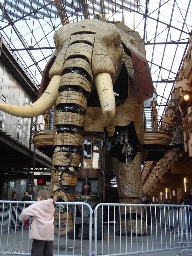 2004年,南特市(Nantes,位于法国西北部)政府在两名场景设计师:弗朗索瓦·德拉豪兹叶赫(François Delarozière)和皮埃尔·奥赫菲斯(Pierre Orefice)的建议下,在南特岛上启动了一个新颖的旅游项目:建造一批充满着蒸汽朋克风格的机械动物。这个项目包括三大部分:巨象,鹭之树,和海洋世界旋转木马。