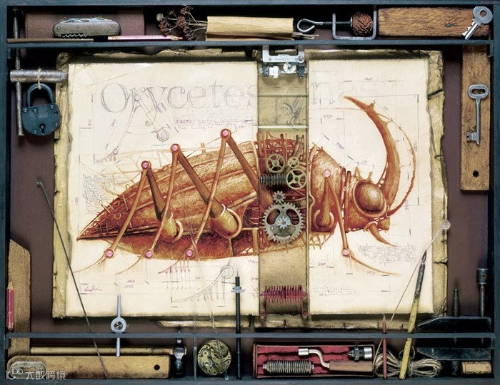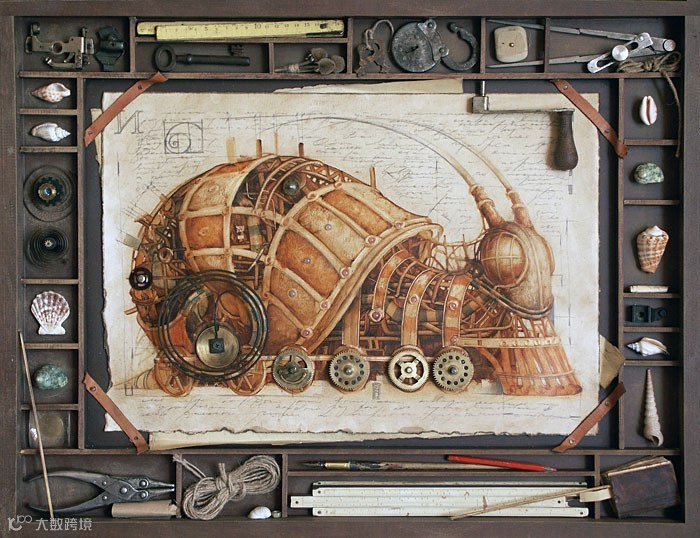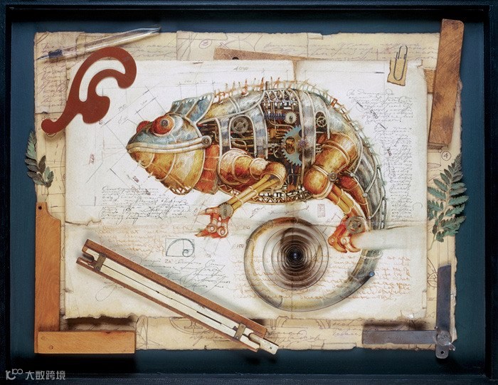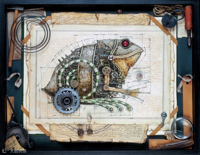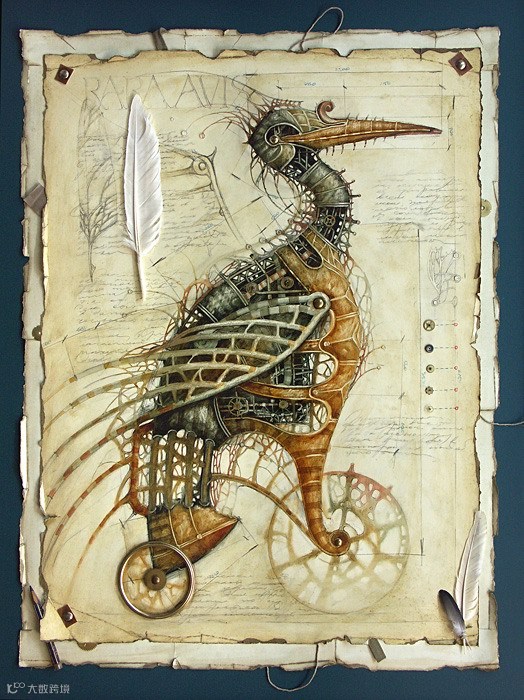我们先来看看俄罗斯艺术家Gvozdariki的作品(艺点儿以前推送过,好看你们就再看一次。),该系列作品充满着浓浓的蒸汽朋克味道,作品以鸟,鱼,兽为内容,将它们“机械化”后配上一些vintage的“配景”,这为作品添加了更多“蒸汽”味道。这些科幻奇思下再造生命可以跨越海陆空了。