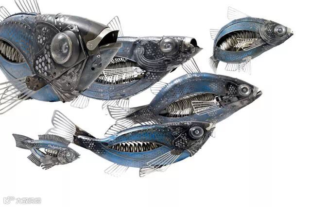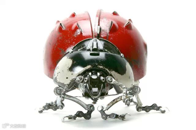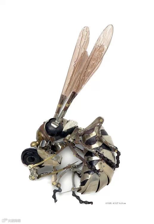 下面是Edouard Martinet的作品,好似把Gvozdariki的作品从平面搬到了三维空间里。Edouard Martinet1963年1月16日生于法国,1988年毕业于巴黎平面艺术学院。他常常摆弄各种各样被废弃的材料例如锈蚀的厨房平底锅,打字机上的零件,汽车灯等等一些别人眼中的垃圾金属,巧妙地将它们塑造成动物与昆虫。