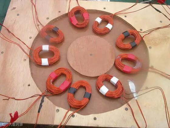 用水刀切下了一个12英寸(30.48厘米)的钢制圆盘,之后在上面按照磁铁的尺寸切出合适的安装孔,最后围绕圆盘边缘等距安装了12个N50级别的铷铁硼方形磁铁。磁铁的磁力越强越好。
