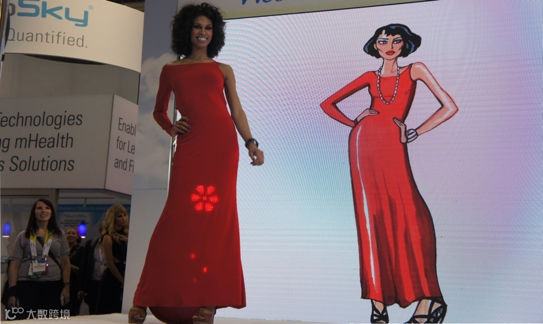 ▲最后这位红色礼服的姐姐同样将卖点放在裙底,而且仅限裙底——一组 LED 灯可以让裙子变换不同花色。