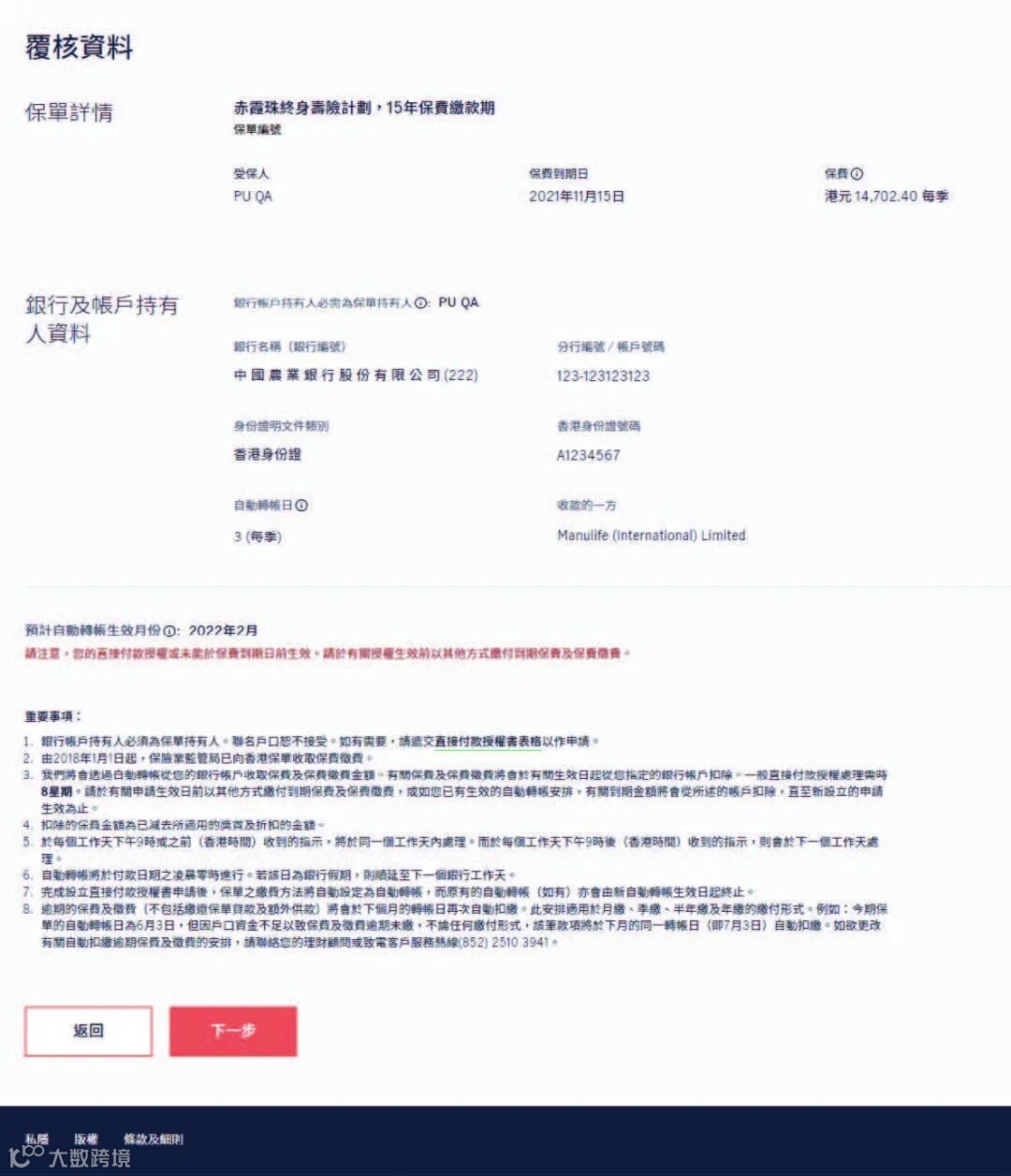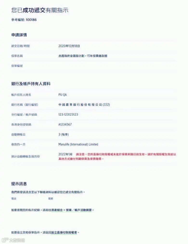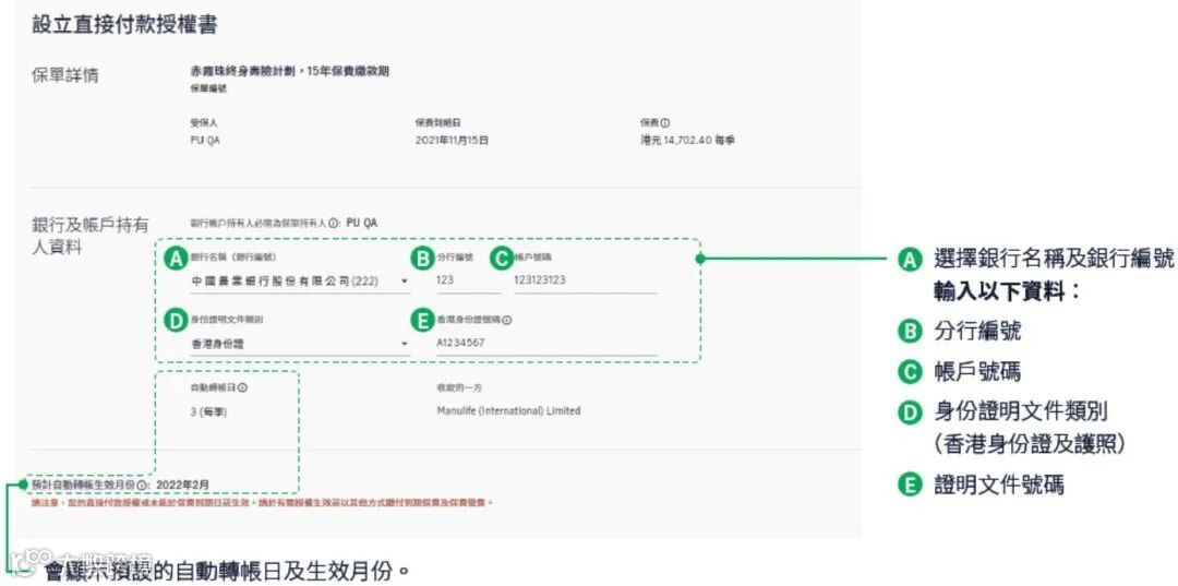 提示2:自助设立DDA,仅接受保单持有人本人的香港银行港元账户,且身份证件需为香港身份证或护照,如内地客户设立DDA或需绑定其他家庭成员的香港银行账户,请咨询顾问