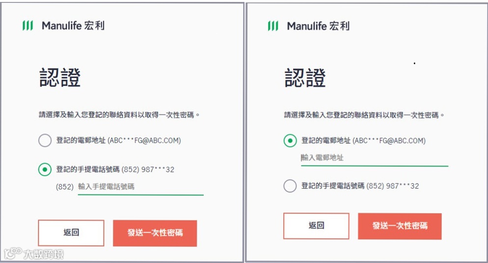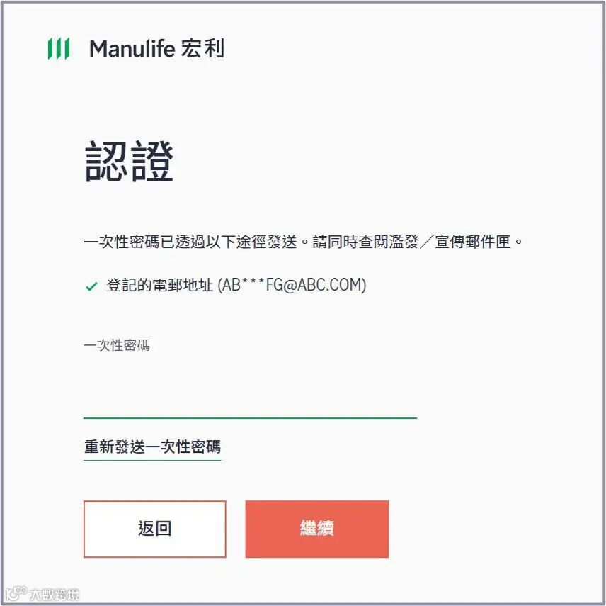 5.可以选择通过登记在保险公司的手机号码(推荐)或电邮收取一次性密码,填写手机号码或电邮后点击[发送一次性密码]