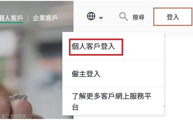 1.宏L官网右上角点击[登入],再点击[个人客户登入]