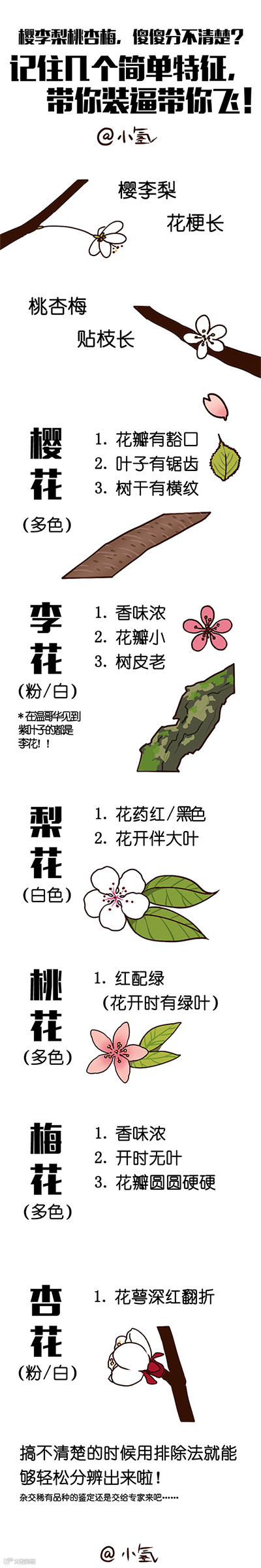 春天到了,赏赏花,心情也跟着荡漾起来~ 可树上开的这些,到底是樱花,桃花,梨花,梅花,还是杏花……?这里由贤集网友小氢用萌漫呈现它们的区分特征,简单好记,来学习下蔷薇科姐妹们各自的长相吧:
