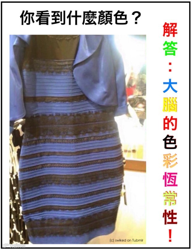 (謝伯讓的腦科學世界/文)这条连衣裙这几天在各大网站上已经把国内外的网友搞疯了,有些人觉得它是白金相间的,而有些人则觉得它呈现出黑蓝两色。