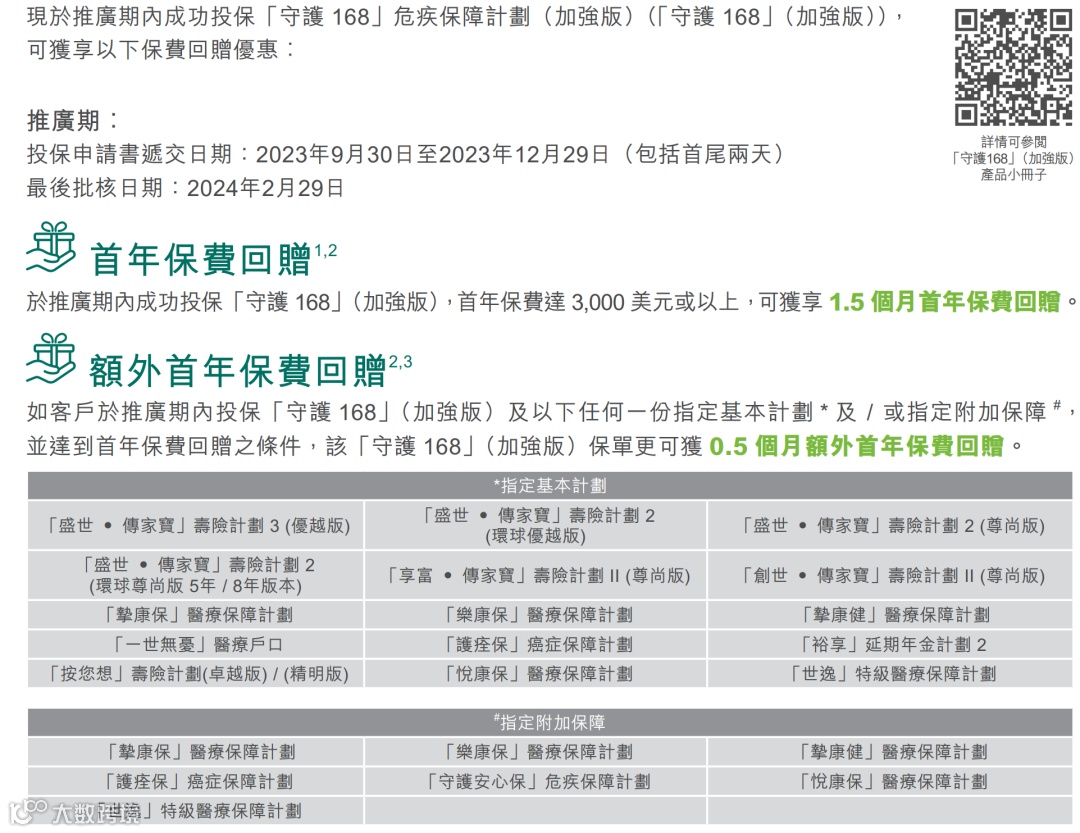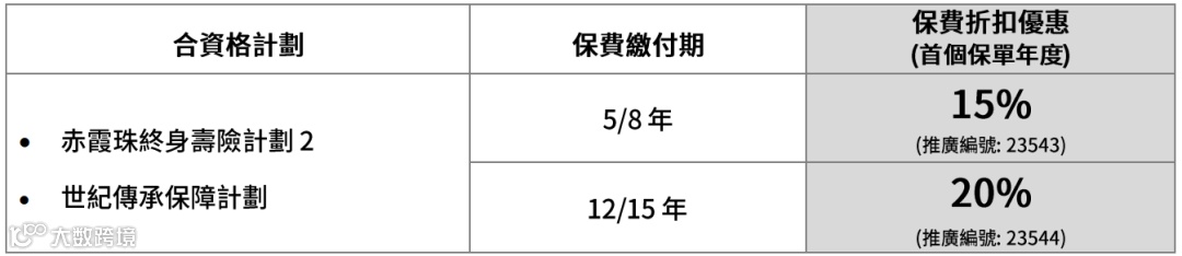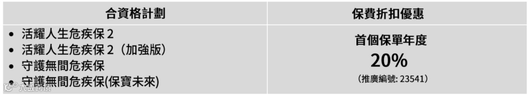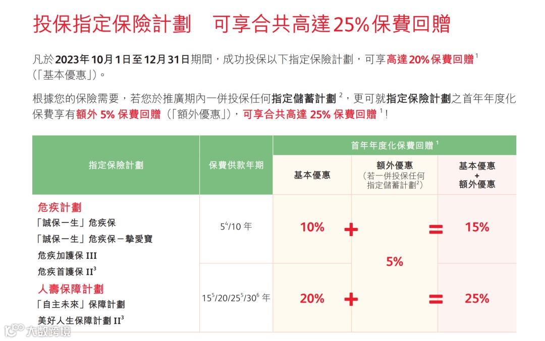 优惠:可享合共高达25%保费回赠。