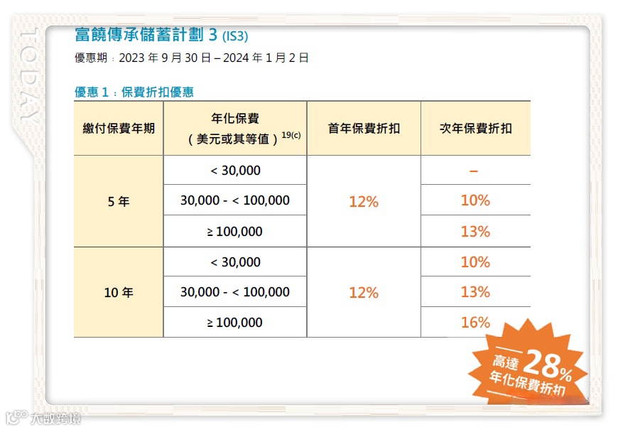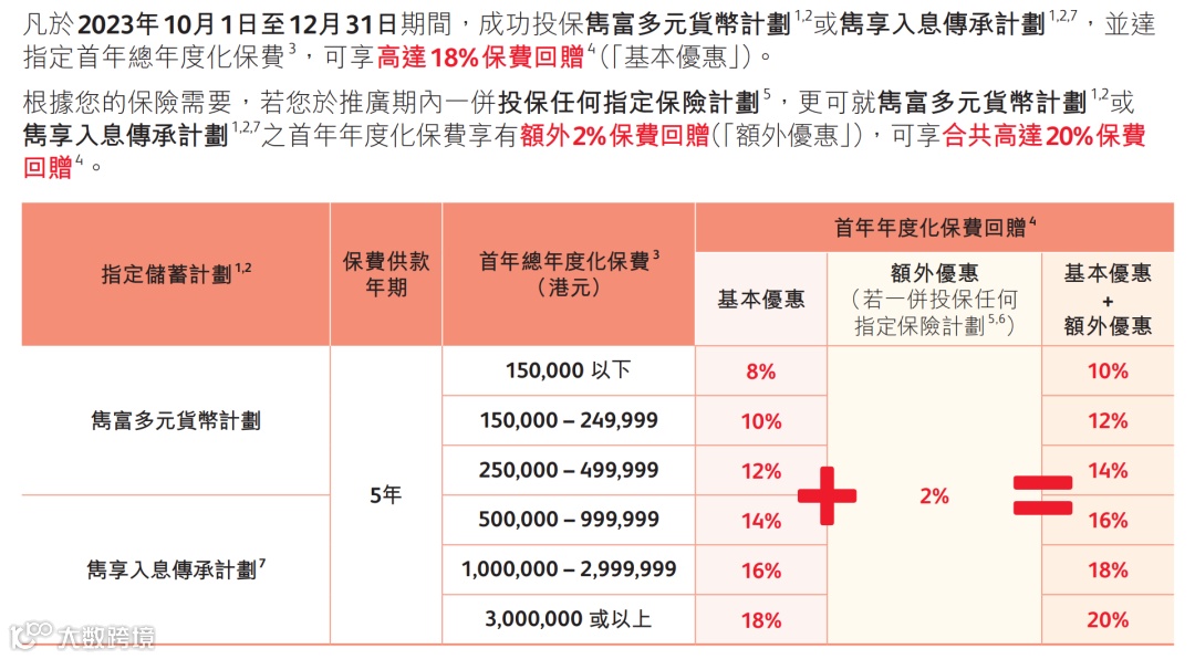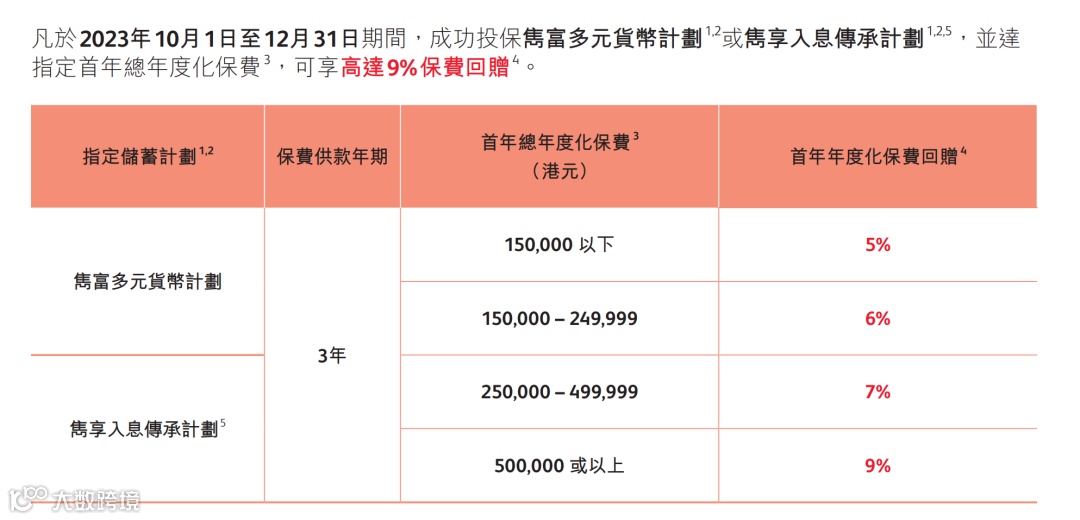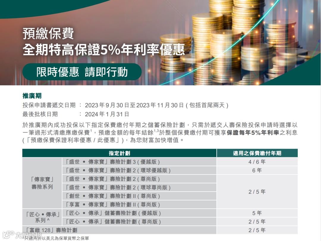 2.保诚:隽预缴保证利率上调至5%;3年储蓄最高优惠9%,5年储蓄最高优惠18%+2%