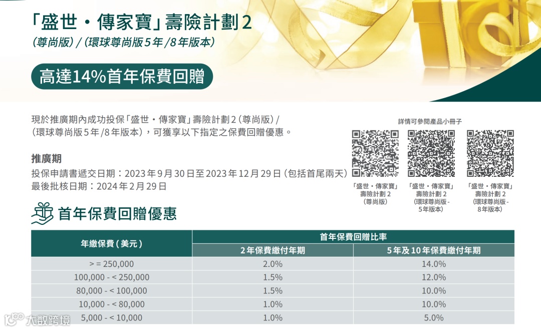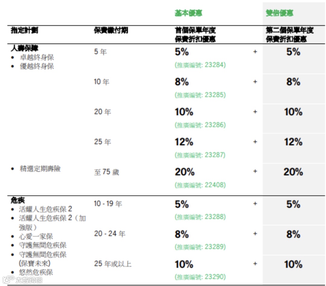 8.万通:5%预缴保费优惠保持不变;5年期储蓄优惠12%+次年13%;10年期12%+次年16%。