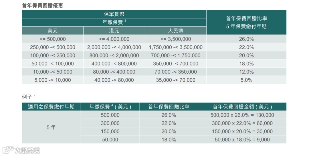 6.富通:5%预缴保证利率;储蓄5年期首年保费回赠最高达26%。