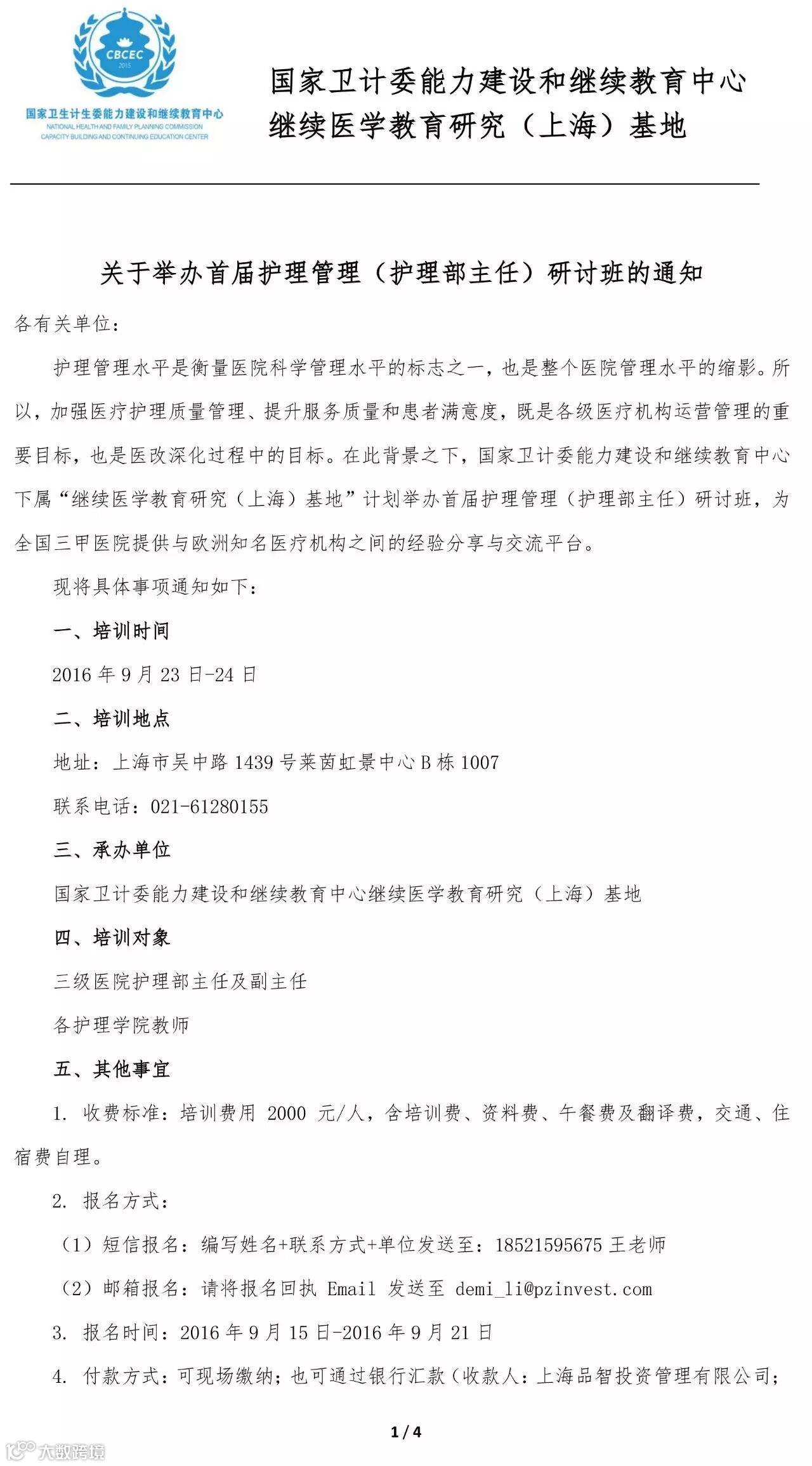 导读:关于举办首届护理管理(护理部主任)研讨班的通知