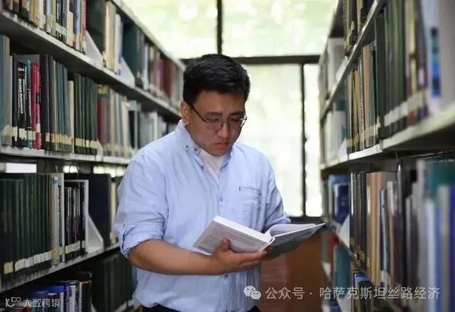↑6月26日,在位于中国西安的西北工业大学本部图书馆,西工大哈萨克斯坦分校学生道托夫·铁木尔阅读书籍。