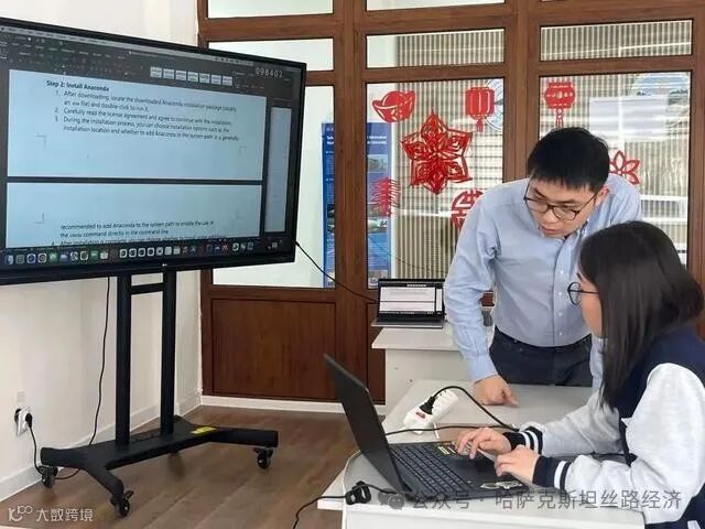 ↑在哈萨克斯坦阿拉木图,来自西北工业大学材料学院的刘哲教授(左)在西工大哈萨克斯坦分校上课。