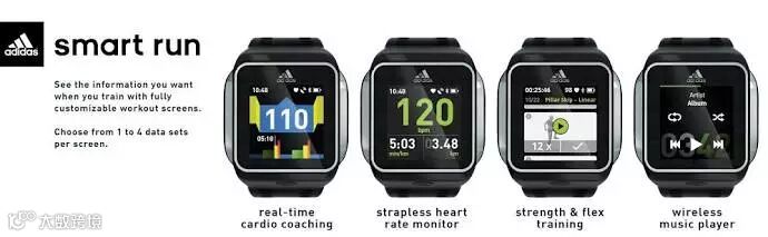 阿迪达斯的SmartRun手表和智能球将于2016年一月的CES展中公布。SmartRun手表作为高端手表,零售价为300美元,目的是希望通过一个由跑步教练设计的实时指导培训计划,来帮助跑者提高。