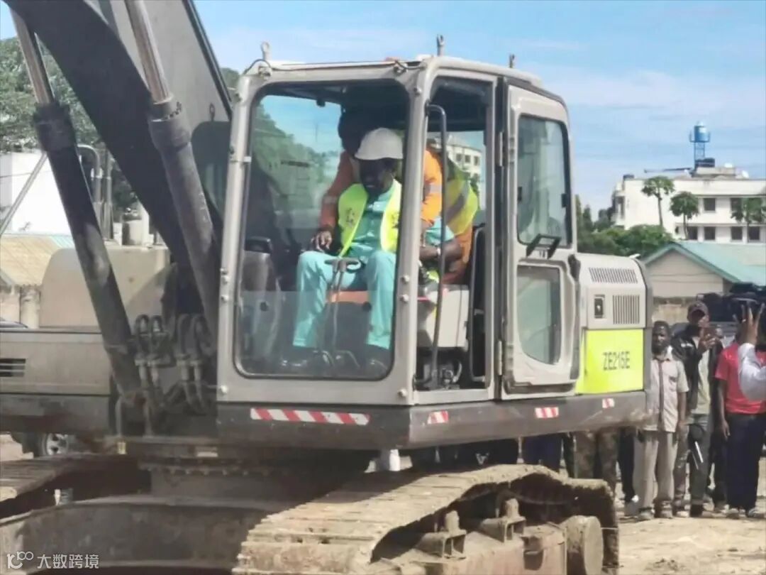 ▲肯尼亚总统亲身体验中联重科挖掘机