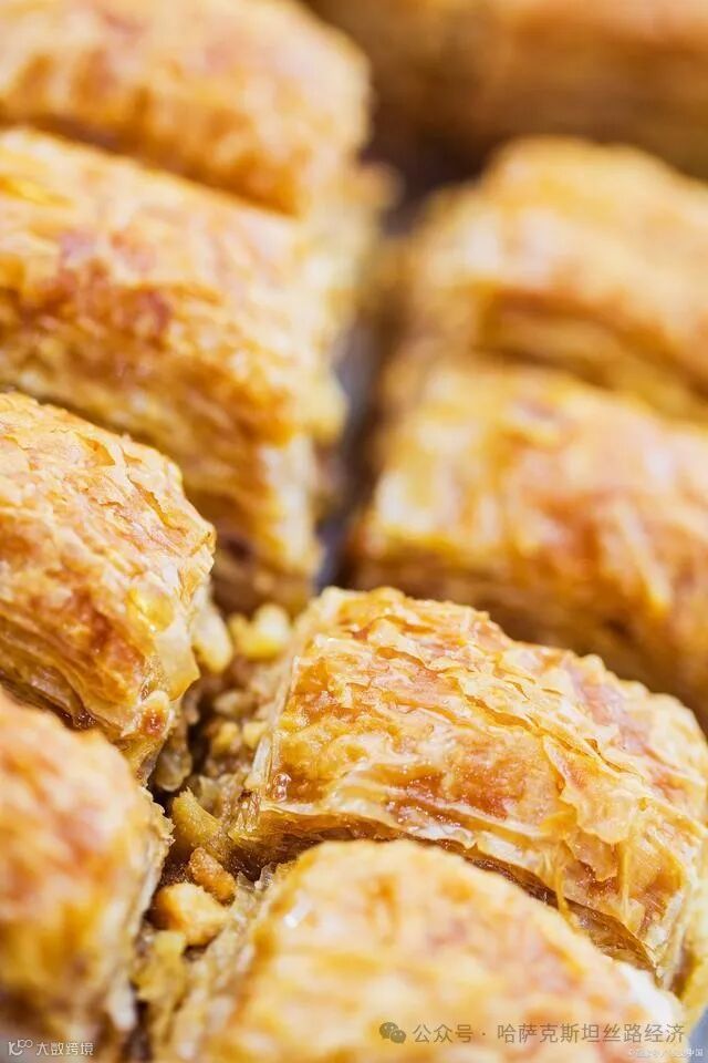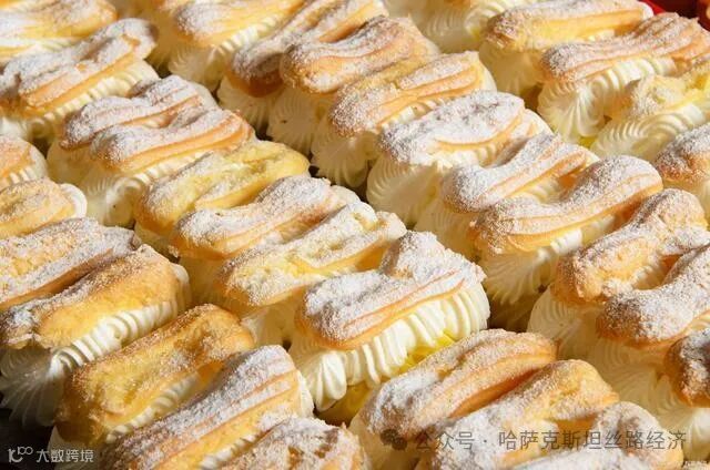 第五,奶油酥(Beshbarmak):奶油酥是哈萨克斯坦的传统主食,通常由面粉、羊肉和蔬菜制成。面团制成后,将切成薄片的羊肉和蔬菜放在面团上,然后用沸水煮熟。煮熟后,将奶油倒在面团上,然后切成小块,与全家人一起享用。