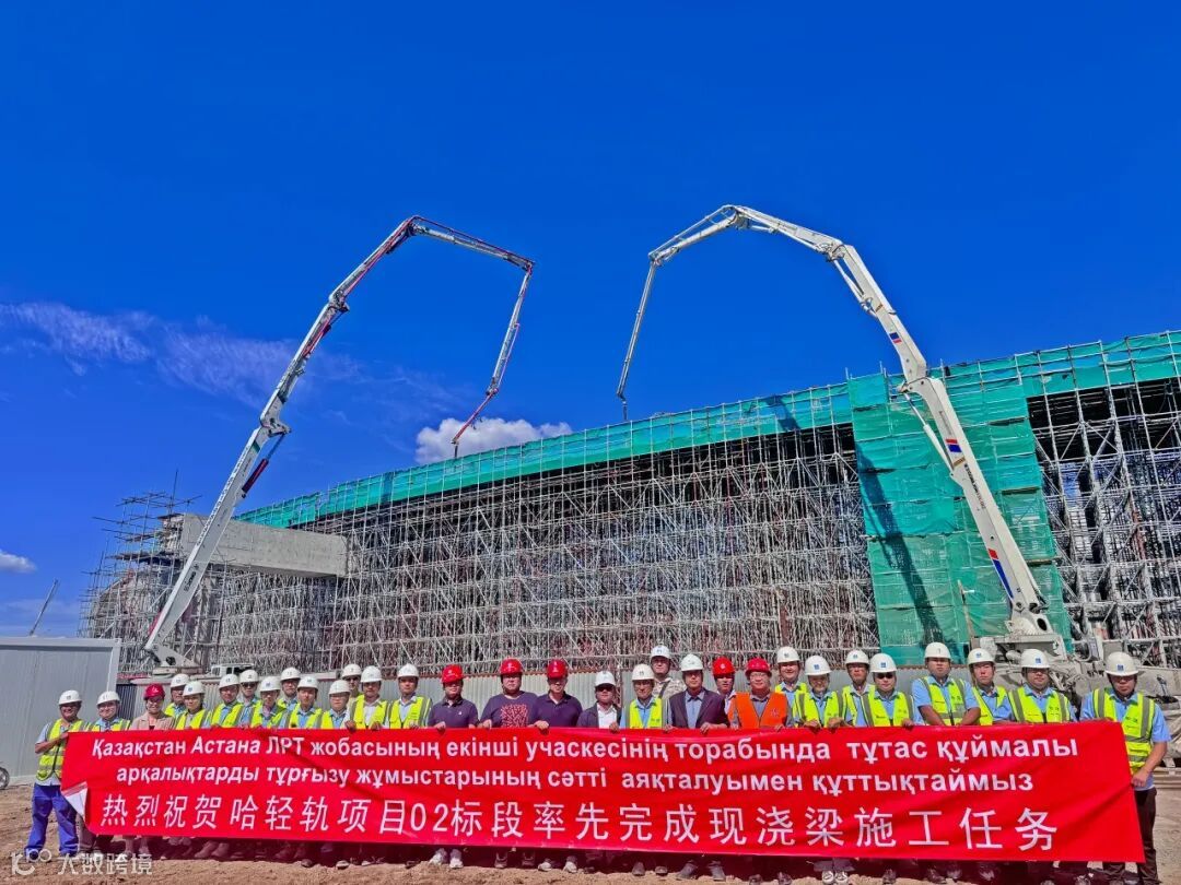 自2024年阿斯塔纳轻轨项目复工复产建设以来,在公司和海外事业部的高度重视下,阿斯塔纳轻轨1标和2标项目严格按照中铁亚欧业主单位履约要求,周密策划。面对紧迫工期和繁重任务,项目部制定年度、季度、月度施工计划,将施工任务细化到每一天。在中铁亚欧业主单位组织的“大干100天”劳动竞赛中,项目部锚定扛旗夺杯目标,全年开局施工便在全线创造了“六项第一”。在现浇梁施工中,2标项目统筹组织,抢晴天、战雨天、毫不松懈,创造了25天完成140m现浇梁浇筑的施工纪录,向哈萨克斯坦人民展现了“中国速度”的建设力量,掀起全线施工新高潮。