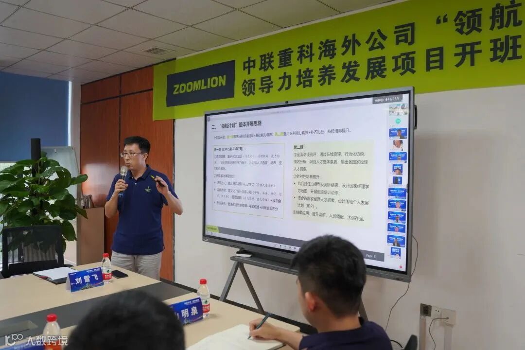 “领航计划”作为海外公司人才培养的重点项目,得到了人力资源中心领导和中联管理学院的大力支持。中联管理学院主任朱远超现场参加开班仪式并发言,朱主任首先对参加“领航计划”第一期培养项目的学员表达了衷心的祝贺。其次,阐释了领航计划项目的设计思路及目的:建立海外国家经理人力素质模型,对照素质模型补齐差距,提升能力行动学习反馈输出,帮助学员从单纯的业务管理向团队管理进行转变。最后,希望全体学员学有所成、学有所获,塑造个人品牌,真正扬帆海外,领航中联重科的海外业务。