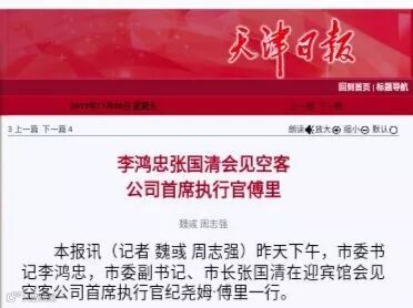 法国巨头驾临天津,天津领导与空客首席执行官进行会面。
