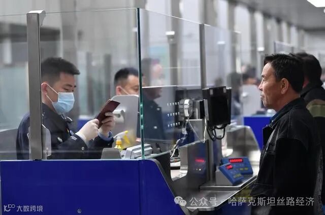 霍尔果斯出入境边防检查站民警在为游客办理合作中心入园证件(4月18日摄)。新华社记者 赵戈 摄