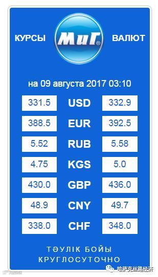 【обменный курс】2017年8月9日哈萨克斯坦坚戈汇率