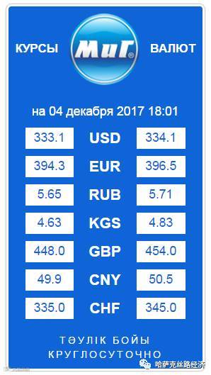 【обменный курс】2017年12月05日哈萨克斯坦坚戈汇率