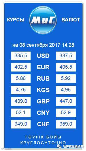 【обменный курс】2017年09月08日哈萨克斯坦坚戈汇率