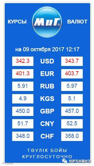 【обменный курс】2017年10月09日哈萨克斯坦坚戈汇率