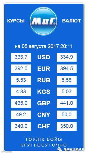 【обменный курс】2017年8月6日哈萨克斯坦坚戈汇率