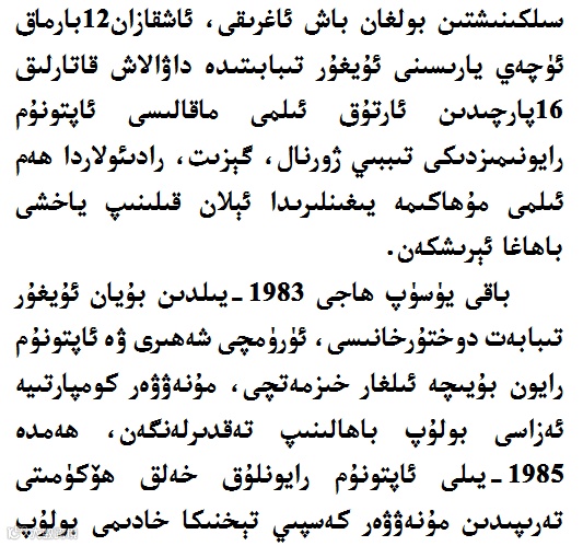 ئۇيغۇر تىبابىتى ئۈچۈن كاتتا شان-شەرەپلەرنى قۇچقان باقى يۈسۈپ