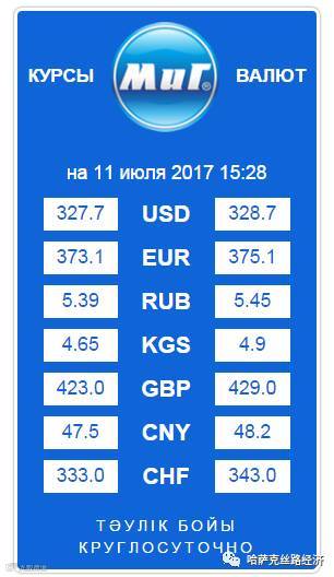 【обменный курс】2017年7月11日哈萨克斯坦坚戈汇率