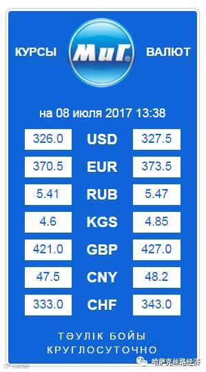 【обменный курс】2017年7月9日哈萨克斯坦坚戈汇率