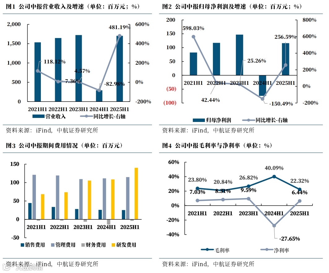 从2025年Q2来看,公司实现营收(13.51亿元,同比+530.21%,环比+284.11%)大幅增长,归母净利润(1.33亿元,同比扭亏,增加1.57亿元;环比扭亏,增加1.50亿元)大幅增长,扣非归母净利润(1.38亿元,同比扭亏,增加1.65亿元;环比扭亏,增加1.65亿元)大幅增长。毛利率(20.86%,同比-14.43pcts)下降明显,净利率(9.91%,同比+20.31pcts)显著提升。