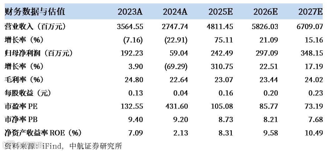 基于以上观点,我们预计公司2025-2027年的营业收入分别为48.11亿元、58.26亿元和67.09亿元,归母净利润分别为2.42亿元、2.97亿元及3.48亿元,EPS分别为0.16元、0.20元、0.23元。基于公司所处行业地位以及未来的发展前景,我们维持“买入”评级。