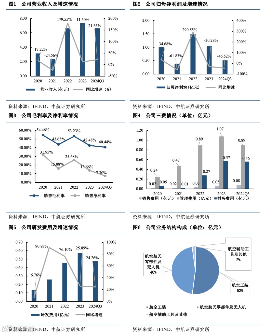 ②公司业务布局范围广泛,客户包含多家主机厂、科研院所,产品广泛应用于军、民领域,有人、无人机配套,涉及金属材料、非金属材料,工装、机加、整机,产品品类丰富,全产业链布局。公司在手订单充沛,综合竞争力不断提升,未来业务规模体量有望呈现高增长。