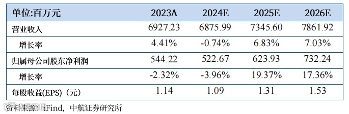 我们预计公司2024-2026年的营业收入分别为68.76亿元、73.46亿元和78.62亿元,归母净利润分别为5.23亿元、6.24亿元和7.32亿元,EPS分别为1.09元、1.31元和1.53元,我们维持“买入”评级,目标价40元,对应2024-2026年PE分别为37倍、31倍及26倍。