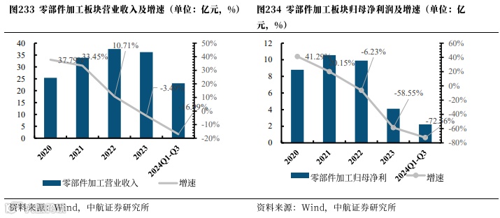 iv. 零部件加工:经营业绩大幅下滑,受交付节奏及价格影响较大