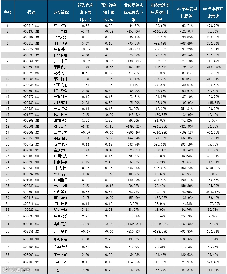 截至7月19日,共计61家企业公布2024年半年报业绩预告,其中35家业绩预减,整体来看,目前发布预告(快报)的上市公司净利润变化中位数下限为-43.58%。但从2024Q2单季度数据来看,相较于Q1环比增速为中位数为24.26%。