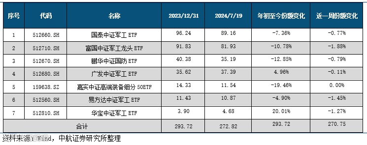 图7 近期主要军工ETF基金份额变化(单位:亿份)
