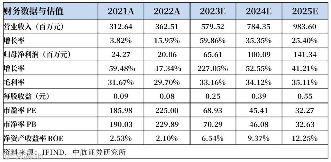 基于以上观点,我们预计公司 2023-2025年的营业收入分别为5.80亿元、7.84亿元和9.84亿元,归母净利润分别为0.66亿元、1.00亿元及1.41亿元,EPS分别为0.25元、0.39元、0.55元,维持“买入”评级,给予目标价24.00元(注:盈利与估值预测暂未考虑可转债的影响)。