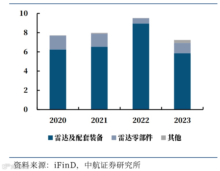 雷达零部件主要是防空预警雷达维修器材、雷达配套部整件等零部件产品。雷达维修器材主要用于雷达产品的日常维修、维护以及战损补充的部组件产品及其他配套的零部件产品;雷达配套部整件主要包含雷达配套天线及模块部整件等。