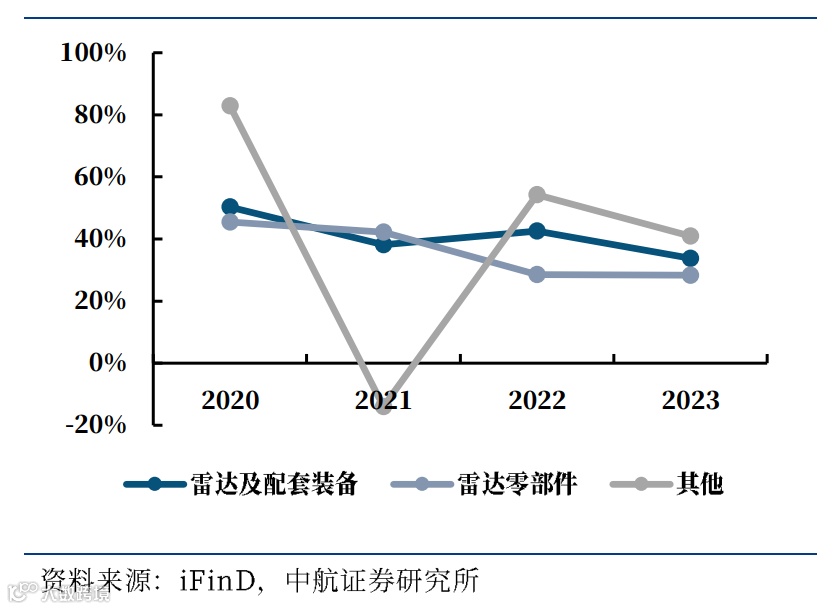 ② 雷达零部件:2023年营收(1.06亿元,+90.43%)高速增长,占总收入比例为14.66%,主要系交付雷达备件产品增加所致。毛利率(28.35%,-0.14pcts)基本稳定。
