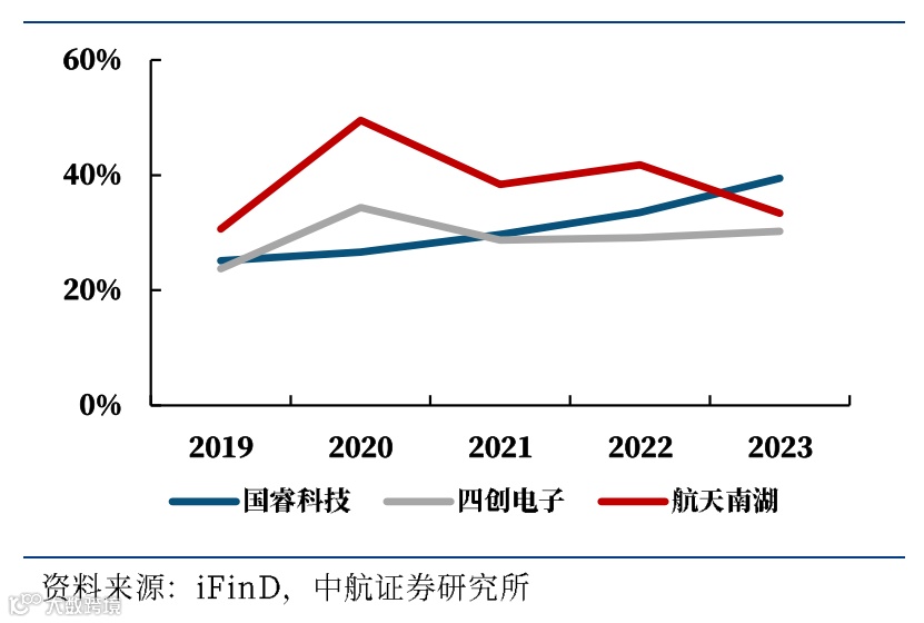 图6 公司与可比公司雷达业务毛利率对比情况(单位:%)