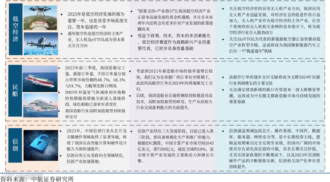 ④ 关注民机、低空经济、军贸、信息安全、商业航天等军民结合领域的“大军工”投资机会;