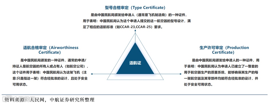 适航认证是eVTOL航空器商业化的重要前提。根据我国民航局规定,为了确保民用航空产品和零部件在投入使用前具备“适航”状态,需要开展适航审定活动。与国际通行做法类似,中国民航局(CAAC)对于航空器设计制造领域采取的是全方位的“证照管理”方式,即通过对航空器及零部件的设计、制造、交付乃至运行等各个环节都实施全方位监管,其关注点在于“安全”,其方式则是对不同的机构主体颁发相应的证照,包括:型号合格审定、生产许可审定和适航合格审定,申请主体分别为型号设计人、制造人、运营人。
