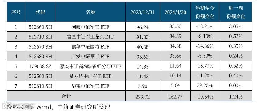 资料来源:Wind,中航证券研究所整理(数据截至2024年4月30日)