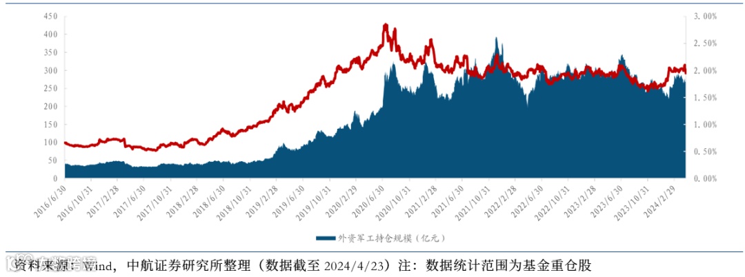 (二)外资持仓分析:外资军工持仓规模提升,持仓占比1.95%