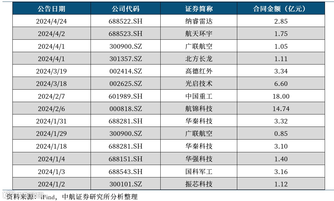 从多家公司公布的日常经营重要合同公告来看,2024年军工上市公司在手订单充足,业绩有望兑现在2024年底。