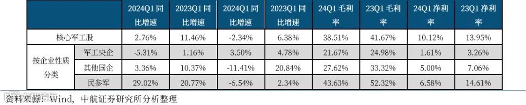 2、军工行业上市公司2023年年报、2024年一季报披露完毕